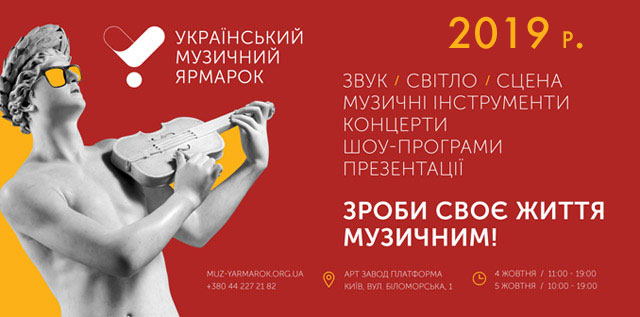 4-5 жовтня 2019 р. у Києві відбувся 22-й Український музичний ярмарок – єдина в країні спеціалізована виставка професійного звукового, світлового та сценічного обладнання й музичних інструментів. Понад 1000 технічних новинок для професіоналів та початківців, а також інноваційні розробки найкращих виробників з України та світу. Цьогоріч подія відбулася на Арт-заводі «Платформа».